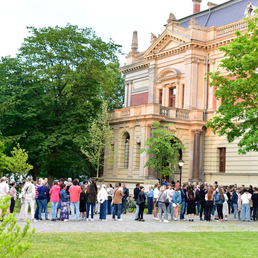 W piątek (17 maja 2024 roku), w przestrzeni ogrodu Willi Lentza odsłonięto kolejną instalację artystyczną. Przedmiotem projektu jest stworzony przez duet artystów Pawła Kleszczewskiego i Katarzynę Zimnoch (Konik Studio) obiekt zbudowany z lekkich elementów drewnianych, które przyjęły formę sześcianu „szafy rozmaitości” o bokach długości około 3x4x3 metry.