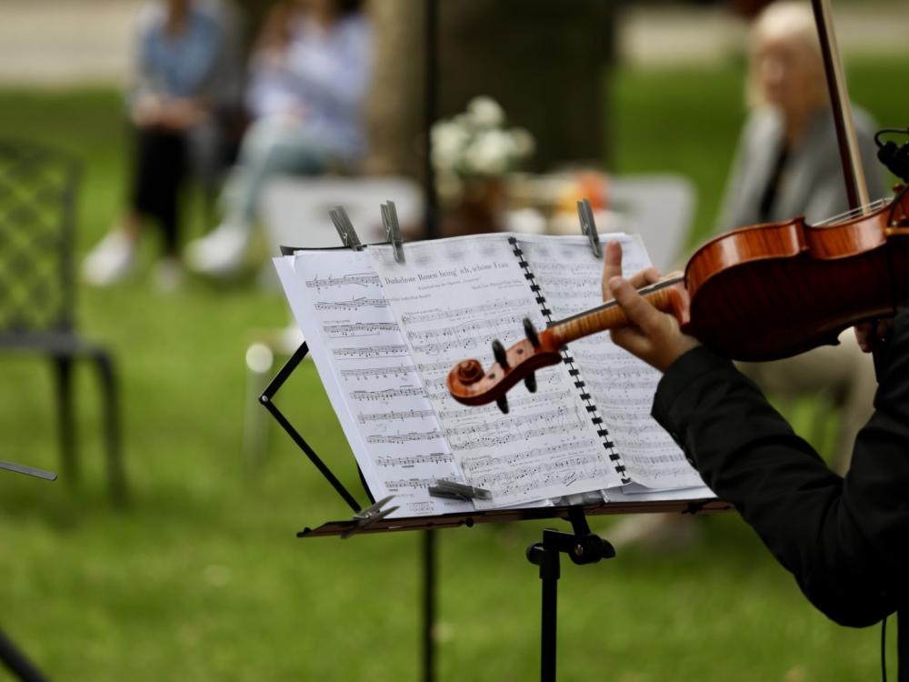 Śniadanie na trawie rozpoczęło się o godzinie 11:00, a ogrodowym dysputom towarzyszyła m.in. muzyka Ludwiga van Beethovena, Franza Lehara, Pietro Mascagniego, Wolfganga Amadeusza Mozarta i Johanna Straussa. Muzyczne perełki pięknie brzmiały w interpretacji dwóch tercetów w składzie: Misza Tsebriy (skrzypce), Anna Zhavoronkova (altówka) i Katarzyna Kupny (wiolonczela) oraz Katarzyna Krajka (flet), Damian Krajka (altówka) i Maja Nizińska (wiolonczela).
