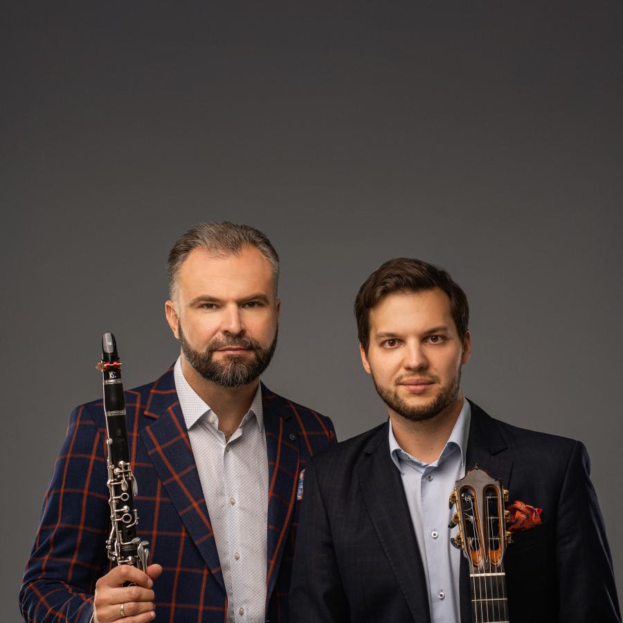 Na naszej scenie wystąpi ceniony duet Bokun / Kościuszko Duo – klarnecista Jan Bokun oraz gitarzysta Jakub Kościuszko. Artyści, którzy podbili sceny Tokio, Paryża, Nowego Jorku czy Brukseli, poprowadzą nas w emocjonującą, zmysłową podróż przez różne epoki, style i nastroje – od klasyki po valse musette, klezmer fusion i world-jazz. 🎷🎸🌍