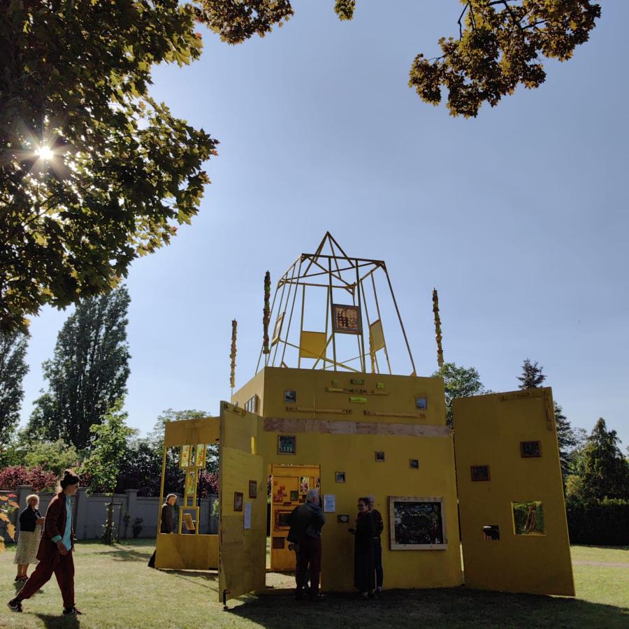W piątek (17 maja 2024 roku), w przestrzeni ogrodu Willi Lentza odsłonięto kolejną instalację artystyczną. Przedmiotem projektu jest stworzony przez duet artystów Pawła Kleszczewskiego i Katarzynę Zimnoch (Konik Studio) obiekt zbudowany z lekkich elementów drewnianych, które przyjęły formę sześcianu „szafy rozmaitości” o bokach długości około 3x4x3 metry.