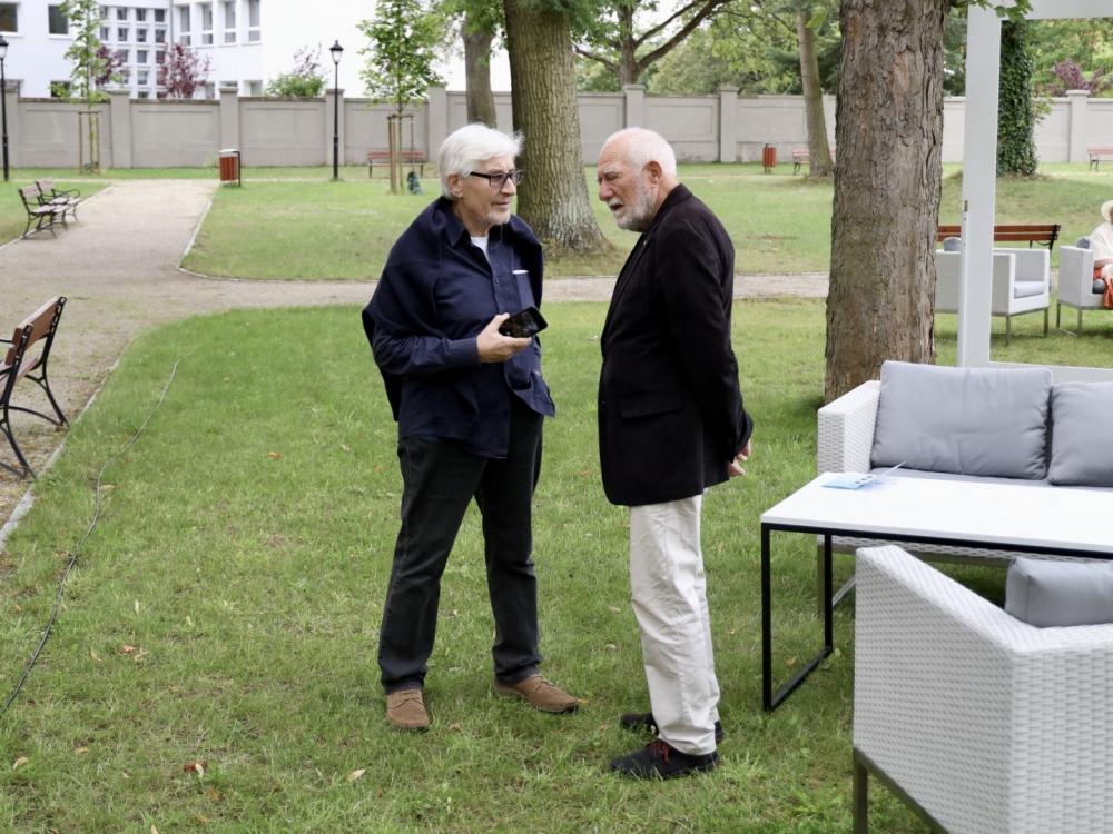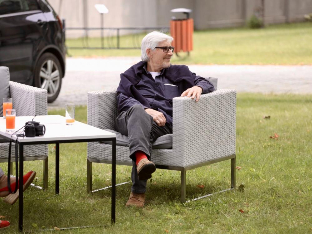 Na śniadanie przybył też Timm Stütz – ceniony artysta fotografik, którego zdjęcia można obecnie oglądać na willowej wystawie pt. CZŁOWIEK | PRZESTRZEŃ. Artysta opowiadał o swojej wystawie i zaprosił na jej finisaż.