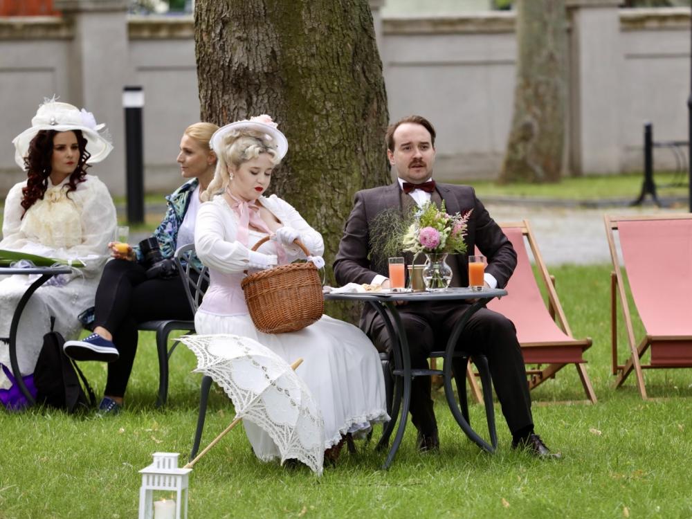 Śniadanie na trawie rozpoczęło się o godzinie 11:00, a ogrodowym dysputom towarzyszyła m.in. muzyka Ludwiga van Beethovena, Franza Lehara, Pietro Mascagniego, Wolfganga Amadeusza Mozarta i Johanna Straussa. Muzyczne perełki pięknie brzmiały w interpretacji dwóch tercetów w składzie: Misza Tsebriy (skrzypce), Anna Zhavoronkova (altówka) i Katarzyna Kupny (wiolonczela) oraz Katarzyna Krajka (flet), Damian Krajka (altówka) i Maja Nizińska (wiolonczela).