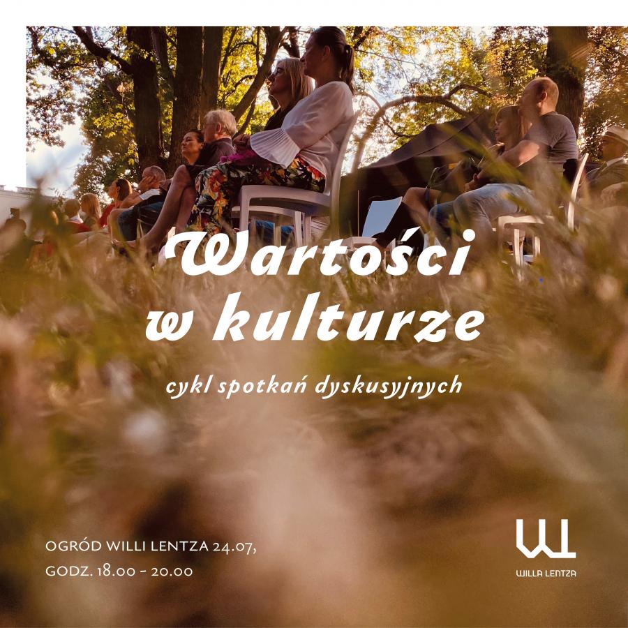Każda kultura opiera się na wartościach. Chcemy rozmawiać na ten temat, dlatego w ogrodzie Willi Lentza organizować będziemy cykliczne spotkania dyskusyjne, podczas których nasi Goście rozmawiać będą właśnie o wartościach w kulturze.